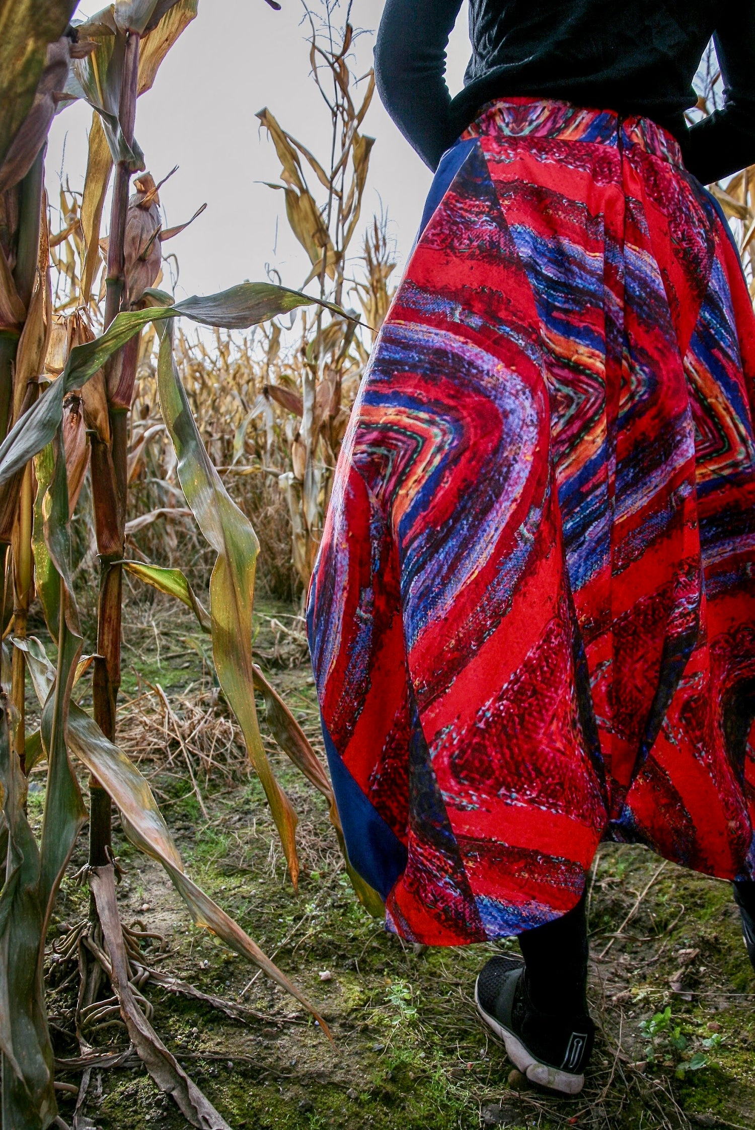 Oto wyjątkowa kolekcja barwnych i energetycznych spódnic. Spódnice powstają z materiału, na którym nadrukowane zostały motywy z moich obrazów. Ten wzór pochodzi z obrazu „Mandala”. Kolory dają radość i z obrazów postanowiły trafić na ubrania!